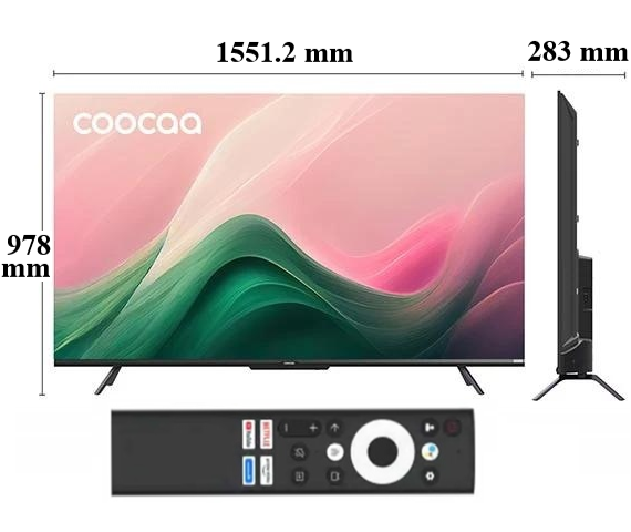 Tivi Coocaa 70Y72 và remote