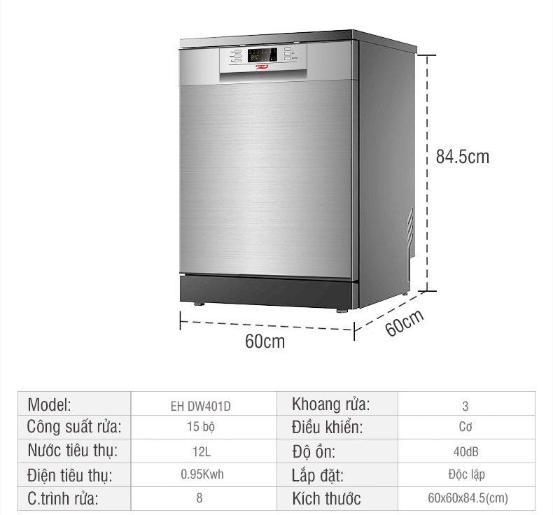 THÔNG SỐ MÁY RỬA BÁT CHEFS EH DW401D